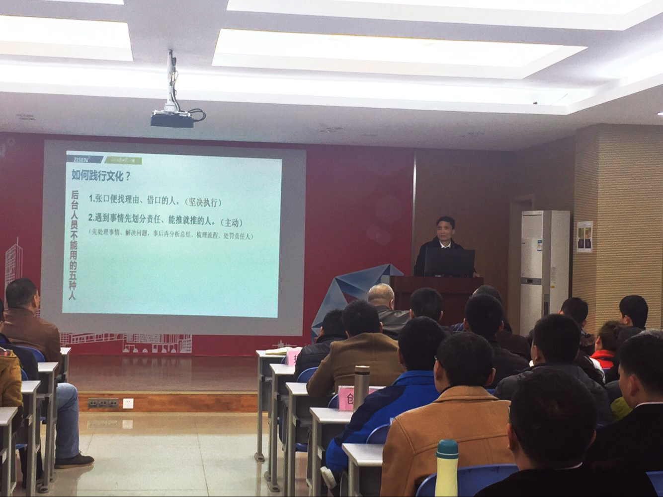 此次培訓(xùn),李董分別對公司新的核心價值觀、企業(yè)精神、使命愿景等文化要素進行了闡述和解讀,并重點就正升精神在各部門的體現(xiàn)、文化踐行、文化營造、文化系統(tǒng)等多個維度進行了宣貫。在文化踐行方面,李董介紹了營銷、技術(shù)、后臺、后勤等崗位不能用的“五種人”,“劍指”公司在文化營造方面,要“不能成為那五種人、不能招聘五種人、做出表率影響那五種人、通過考核與獎懲改變那五種人、通過淘汰遠離那五種人”。鮮明的指出了公司在文化體系打造、日常踐行、文化考核等諸多領(lǐng)域的方法和技巧。