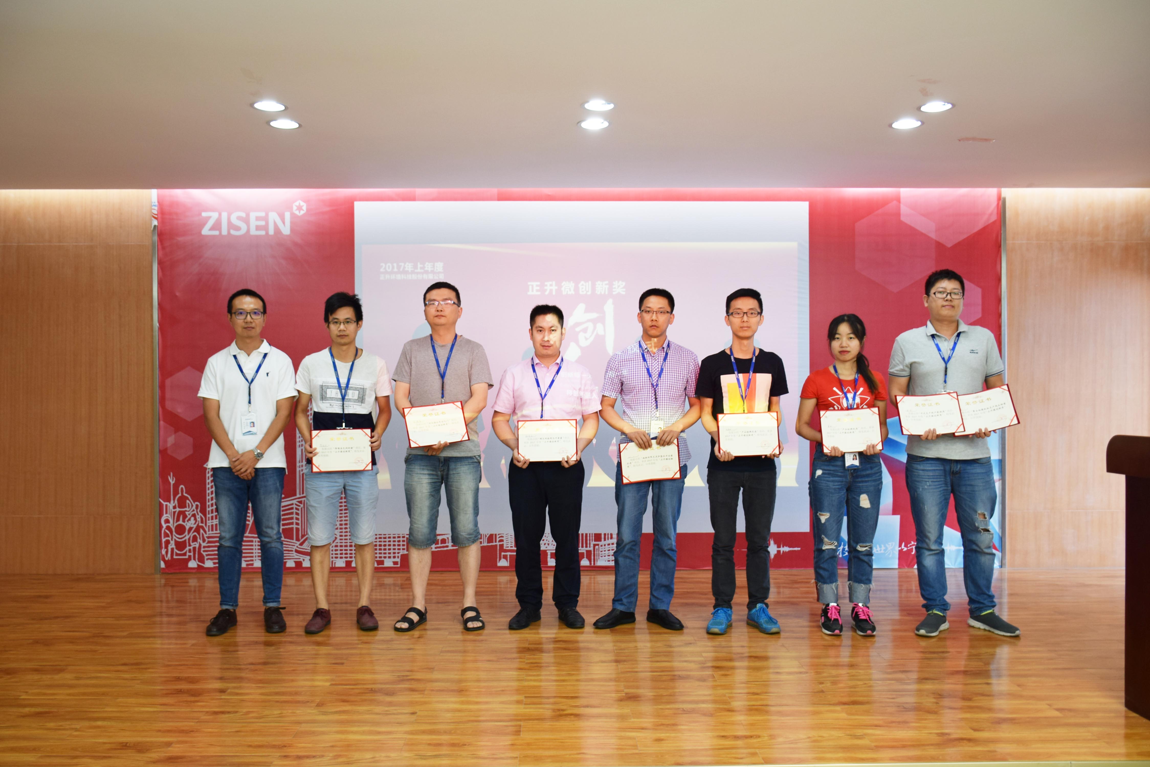 分享課結(jié)束后,公司進(jìn)行了2017年上年度“正升微創(chuàng)新獎(jiǎng)”頒獎(jiǎng)儀式,由創(chuàng)新學(xué)院院長張曉杰分別為張奎、劉力、楊秀伍、何映氚、賀廷江、何青松等7位獲獎(jiǎng)代表頒發(fā)獲獎(jiǎng)證書及獎(jiǎng)金。