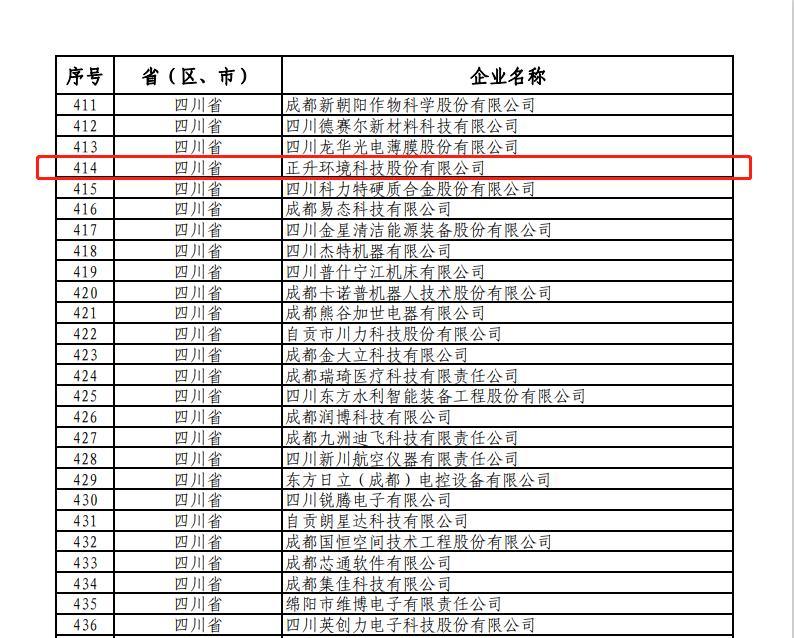 近日,工信部中小企業(yè)局公示了第三批第一年建議支持的國家級專精特新“小巨人”企業(yè)名單,正升環(huán)境科技股份有限公司成功入選。正升環(huán)境從數(shù)千家國家級專精特新“小巨人”企業(yè)中脫穎而出,成為四川省29家之一,也是本次成都市溫江區(qū)唯一入選企業(yè)。